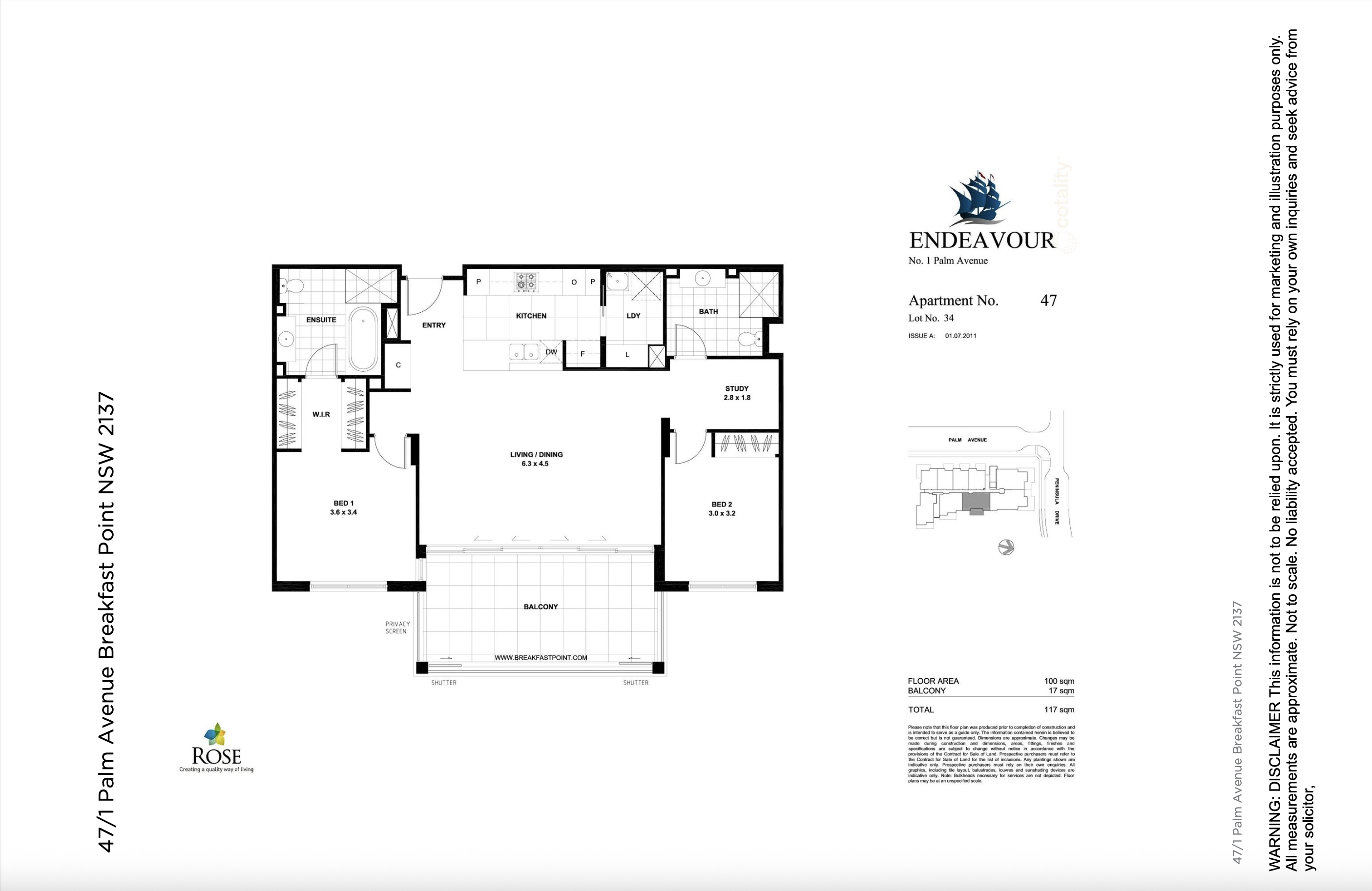 offers apx 100 sqm of internal living and a 17 sqm covered balcony. The